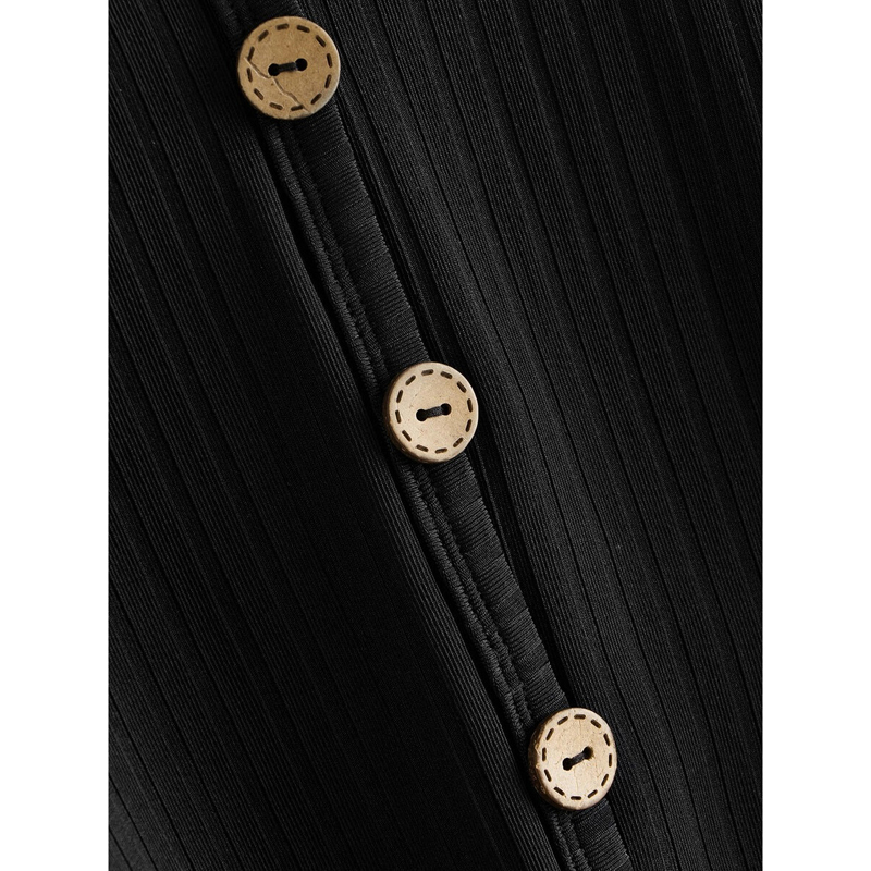 Rib Mock Front Buton Crop Top